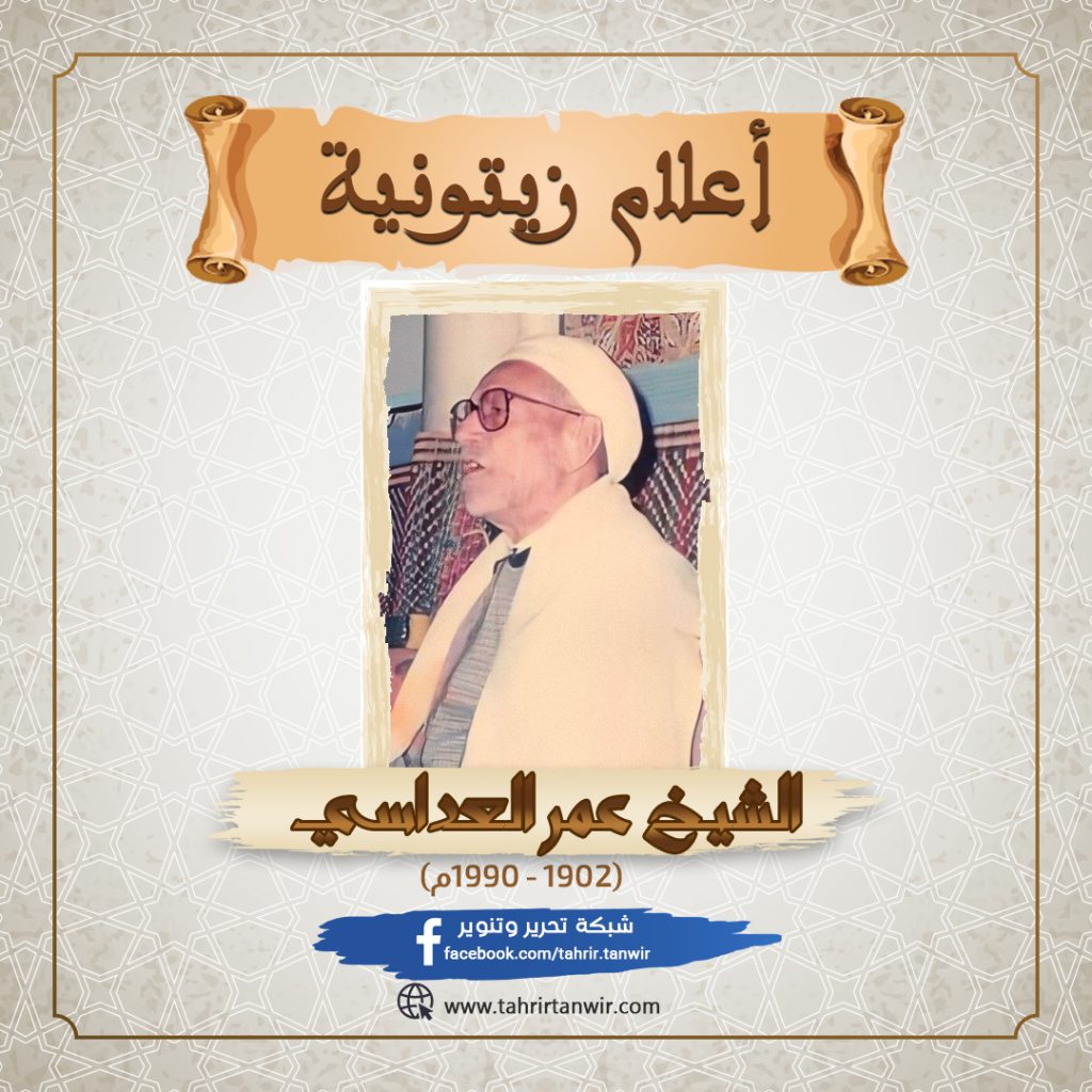 ولد المنعم المبرور الشيخ عمر بن صالح العدّاسي بتينجة من ولاية بنزرت في 15 سبتمبر 1902م. حفظ القرآن الكريم ومبادئ اللّغة العربيّة ثمّ إلتحق بجامع الزيتونة المعمور فاندرج في سلك طلبته، وذلك في أكتوبر سنة 1920م إلى أن حصل على شهادة التطويع في العلوم في جوان 1927م.