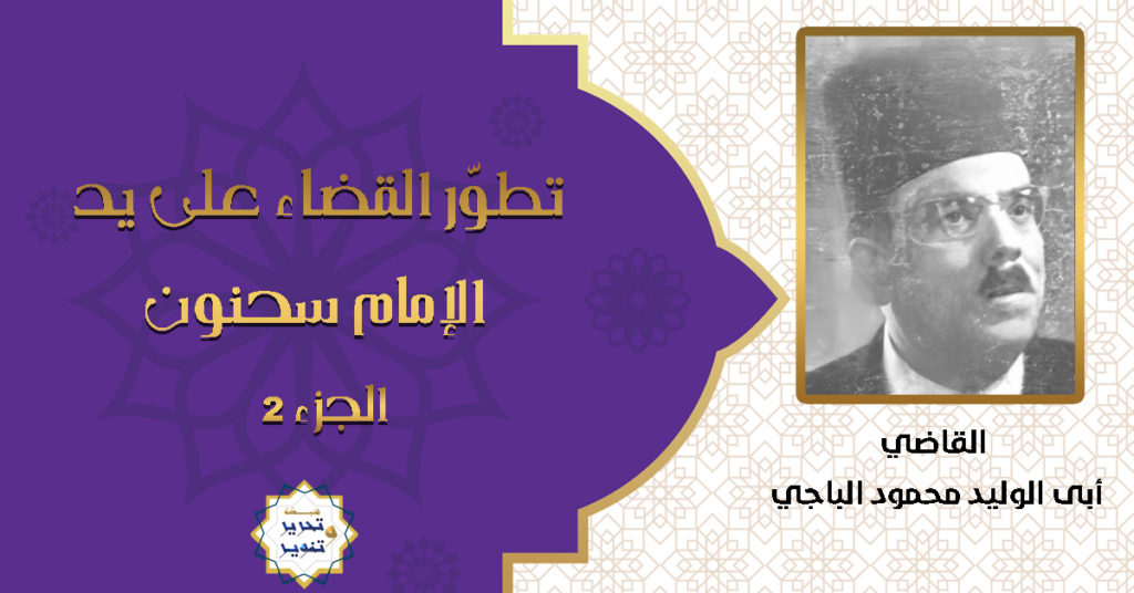 مازلنا نتابع الثورة الإصلاحيّة التي تزعمها الإمام سحنون من عام 234 إلى 240 هجري، وشملت الاجتهاد الذكي في توليد النصّ الفرعي من الأصل النابع مبدؤه من أحد مصادر التّشريع الكبرى. والإجراء القضائي نزولا عند متطلبات التطور الحضاري الذي بلغته البلاد في عهد الدولة الأغلبيّة، ومماشاة للعادات والأعراف المحليّة.